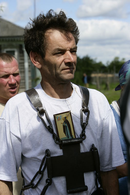 Иринарховский крестный ход 2007 г.Молебен во время остановки. Серб Петр в веригах прп. Иринарха