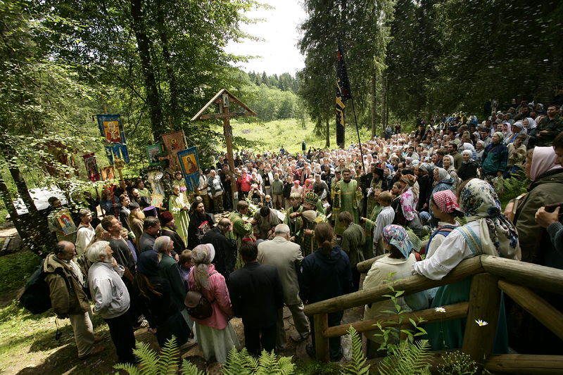 Иринарховский крестный ход 2007 г.Источник прп. Иринарха Затворника. Крест на месте разрушенной часовни