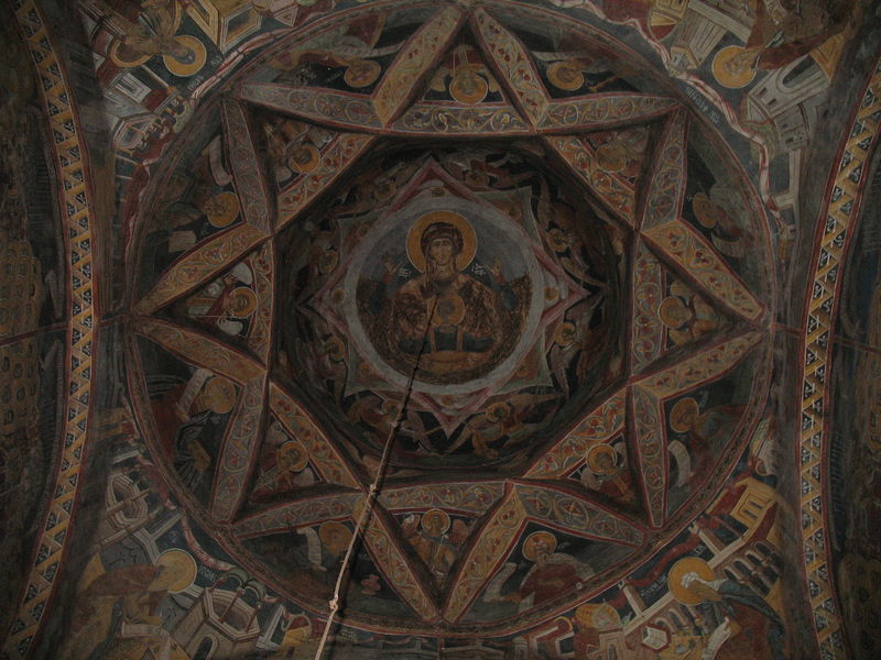 Знаменитая фреска взятия турками Константинополя в 1453 г. (роспись внешней стены храма)