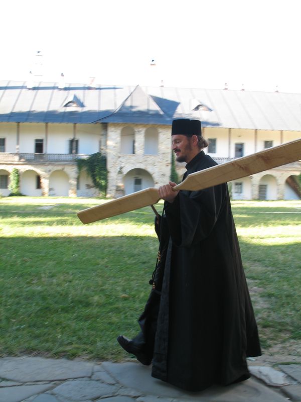 Монах с билом созывает братию на богослужение