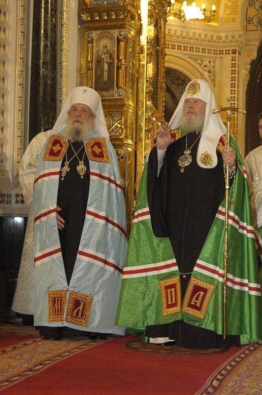 Богослужение в храме Христа Спасителя, первое после восстановления единства Русской Православной Церкви 17 мая 2007 г.