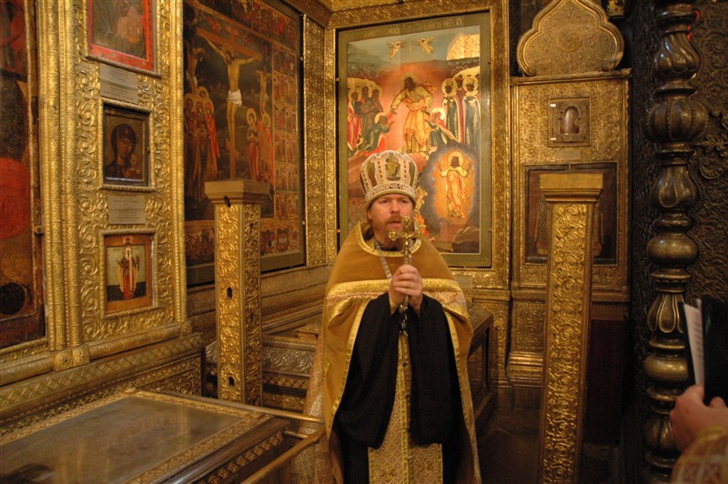 Фотогалереи » Празднование 600-летия со дня преставления святителя Киприана Московского » Молебен братии Сретенского монастыря у мощей святителя Киприана
