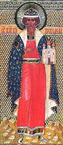 Иван Грозный выступает в Повести уже как хранитель Православия: он первопрестольный христианский царь, который поставлен от Бога на все четыре конца вселенной, он хранит православную веру и повелевает другим твердо держать ее и хранить (Повесть 1986а:400). Перед походом 1577 года Иван Грозный поклоняется псковским святыням: когда он прибывает в Псков, то приходит в главный Троицкий собор и поклоняется иконам Пресвятой Троицы: "И припадаетъ со слезами предъ святымъ образомъ Живоначальней Троицы"; в Псково-Печерском монастыре прикладывается к иконе Успения Божией Матери: "Приходитъ (он) предъ чюдотворную ікону Пречистыя Богородицы, слезы же многи проливаетъ предъ святымъ Ея образомъ". После победы в Лифляндии он возвращается в Псков и опять поклоняется тем же иконам: "…По чюдотворнымъ іконамъ знаменавшися и многiя обуты святымъ местомъ и чюдотворнымъ и святымъ іконамъ воздати обещавшеся" (Повесть 1986а:404). Как рассказывает царю Иван Петрович Шуйский, псковитяне готовы умереть "за Бога, и за своего Государя, и за его государевы дети, и за православную Христову веру, и за своя домы и жены и детей" (Повесть 1986а:414).[1] Сами псковитяне несколько раз подтверждают, что они готовы умереть за святую христову веру, за православного Государя, за его государевых детей, наших Государей (Повесть 1986а:452,459 и др.). Псковитяне призывают на помощь Пресвятую Троицу, Богородицу, всех святых (но особенно псковских) и архангела Михаила.