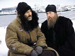 Именно потому появление фильма «Остров», произведенного на канале ОРТ известным, в какой-то мере даже культовым режиссером Павлом Лунгиным, оказалось явлением сенсационным. Прежде всего, следует признать, что никто не ждал такого фильма от Павла Лунгина, известного своими умеренно постмодернистскими взглядами, сервильным настроением в отношении олигархов и убежденного либерала. Фильм «Остров» настолько расходится со всем его предшествующим творчеством, что невольно закрадываются мысли о духовном перерождении, о дороге в Дамаск, на которой всех нас ждет Христос. Но заявлять об этом категорично рановато, и потому остановимся на факте самого фильма. Реально, это попытка заглянуть вглубь веры, представить публике нового героя, который пошел за Господом до конца. Во время войны немецкий военный катер захватывает баржу с углем в северном море и вылавливает на ней двоих – шкипера и матроса. Матрос отчаянно просит сохранить ему жизнь, а шкипер спокойно прикуривает папиросу, когда на него уже наставлен ствол пистолета. Тогда немецкий офицер заставляет матроса застрелить шкипера, что тот и делает после недолгого внутреннего сопротивления. После этого немцы покидают баржу и взрывают ее, но наш матрос из всего этого выплывает, и его подбирают монахи островного северного монастыря. Там он и остается до 1974 года, когда разворачиваются основные события фильма. К тому времени раскаявшийся матрос, служащий при монастыре истопником, становится юродивым старцем, к нему приходят за исцелениями и советами, он чудит на богослужениях и не может забыть свой грех. Его почитает наместник монастыря, его любят все окружающие, и только память о грехе не позволяет ему вернуться к людям. И вот, когда уже весть о собственной кончине дошла до истопника, к нему привозит больную дочь некий адмирал, в котором он узнает того самого шкипера, из-за которого так маялся всю свою жизнь. И по отъезде адмирала с исцеленной дочерью монах мирно умирает в заготовленном для этого гробе. Скажем сразу, драматургия фильма вызовет немало нареканий со стороны строгой православной общественности. Прежде всего, это касается исторических реалий. В 1974 году такого монастыря на севере не могло существовать, и тем более с исцеляющим старцем. Нам могут возразит, что такой монастырь существовал, это был Псково-Печерский монастырь, где и старчество было вполне развито, и исцеления происходили, и народ туда шел потоком. Однако те, кто помнит о тех временах, непременно напомнят вам, что основной темой жизни монахов было противостояние безбожной власти. Адаптация священноначалия к условиям атеистического государства доходила до таких пределов, что вызывала ропот и протест в среде прихожан. В таких условиях существование старцев и духовидцев было головной болью духовного руководства, и хотя внутренне авторитет старцев был вполне весом, проявлялось это чрезвычайно осторожно. Здесь и пролегала основная линия противостояния добра и зла, к сожалению, никак не отображенная в фильме. Увы, в реальности подобные «экстремальные» старцы изживались из обителей, их на дух не переносили власти, их стеснялись в церковном руководстве и их напрямую подвергали гонениям сами монашствующие, не слишком достойные своего звания. Другое дело, что фильм все же представляет собою притчу и не претендует 