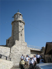 Обитатели квартала покупают еду только в специальных, особо кошерных магазинах. Дети воспитываются в строгости и целомудрии. Телевизора – «рассадника пороков», в большинстве домов «харедим» нет. Такие же правила некоторые израильские политики хотят сделать обязательными для всего населения страны. Религия от государства здесь не отделена, поэтому Верховный Раввинат – высшее религиозное учреждение Израиля – строго следит за тем, чтобы светские законы не противоречили Торе. Иногда из-под пера ученых раввинов выходят и вовсе причудливые распоряжения. Так по причине сходства с христианским крестом, общепринятый математический знак «плюс» в этой стране запрещен к употреблению в школах и университетах, и заменен на перевернутую букву «т». Через систему образования и массовую культуру насаждается неприязненное отношение к Христианству, которое зачастую изображается в виде череды крестовых походов и антисемитских погромов. Что и говорить, православным в такой суровой религиозной обстановке приходится несладко. Через нескончаемые торговые ряды типичного восточного базара с его неистребимым ароматом пряностей, роскошными коврами, чеканными блюдами и кальянами наш путь лежит к улице «Братьев». Особая статья арабских торговцев – продажа сувениров паломникам. Изготовленные из оливкового дерева кресты, красочные открытки с видами библейских мест, перламутровые раковины с тонко выточенными сценами Рождества Христова – все это хозяйство разложено прямо на земле, громоздится на прилавках и развешено на стенах многочисленных торговых лавок. В надежде опустошить кошелек туриста прежде, чем это успеют сделать другие, лоточники оглашают окрестности истошными призывами, хватают покупателя за рукав, предлагая «лучшую во всем Иерусалиме» цену. Поворот налево, вот и подъезд жилого дома. Пройдя его насквозь, оказываешься на пустыре, в дальнем конце которого стоит крохотный храм Николая Чудотворца. Она принадлежит Иерусалимскому Патриархату, но основные прихожане храма – евреи, эмигранты из России. Уже само попадание в Святую Землю на ПМЖ для многих из них стало своего рода чудом. Действительно, в израильском «Законе о возвращении» есть пункт: если еврей добровольно принял какую-либо веру, кроме иудаизма, то он не имеет права на репатриацию в Землю Израиля. Понятно, что это создает огромные неудобства не только многим православным репатриантам из России, но и всем другим христианам, евреям по рождению. По мысли авторов этого закона поделившего евреев на «чистых» и «нечистых», объектом христианской проповеди в государстве Израиль могут быть только арабы, но ни в коем случае не сыны Израилевы. Совместимость понятий «еврей» и «христианин» здесь попытались исключить законодательно.