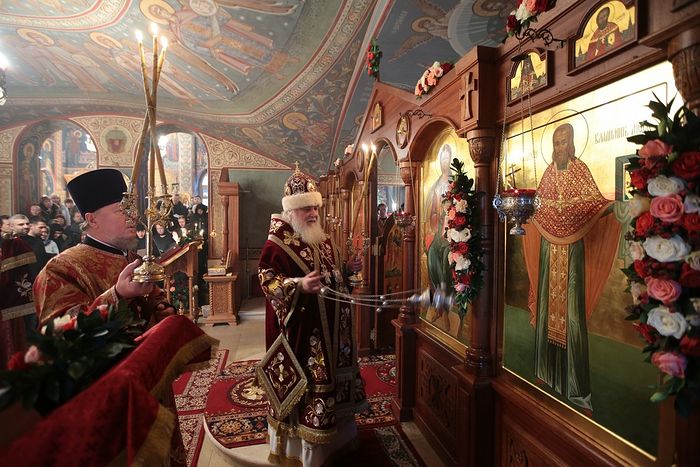 Его Высокопреосвященству сослужили клирики монастыря, а также протоиерей Георгий Полозов, настоятель храма иконы Божией Матери «Знамение» в Ховрине г. Москвы. Богослужебные песнопения исполнил хор сестер обители.