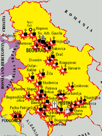 Авиация НАТО нанесла 2300 воздушных ударов. По территории страны было выпушено более 3 тысяч крылатых ракет. Всего было сброшено около 25 тысяч тонн взрывчатки. Во время агрессии НАТО использовала запрещенные виды оружия: кассетные бомбы и необогащенный уран. Так было сброшено в общей сложности 152 контейнера с 35450 кассетными бомбами. Целью бомбовых ударов стали и памятники культуры, древние монастыри и храмы, национальные парки и заповедники, находящиеся под защитой ЮНЕСКО. Частично или полностью было разрушено 18 православных и католических церквей и монастырей. В Косово и Метохии пострадали: Печская патриархия (XIII в.), монастырь Грачаница (XIVв.), Свято-Архангельский монастырь в Горне-Неродимле (XIVв.), мечеть Синан-Паша в Призрене (XVIIв.) и др.