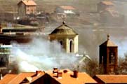 Витина 35. Церковь в Витине повреждена гранатами 17 марта (по сообщению КФОР/УНМИК четыре сербских дома подожжены, православная церковь сильно повреждена). Вместе с этим около 22 часов 17 марта 2004 года в непосредственной близости от монастыря Високи Дечани упало 6 минометных гранат не причинивших никакого ущерба обители (подтверждено военнослужащими КФОР и братией монастыря) Помимо храмов и монастырей, в период с 17 по 20 марта 2004 года на территории Косово и Метохии были осквернены десятки православных кладбищ. |
