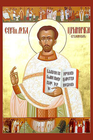Константинопольской. Как известно, у сербов существует обычай: свой небесный покровитель есть не у каждого крещеного, но у каждого рода и семьи – он общий для всех ее членов. Небесным покровителем семьи Вукмановичей был великомученик Георгий Победоносец. И этот род дал Сербской Православной Церкви святых мучеников, наученных своим небесным покровителем стойкости и любви ко Христу. Во второй половине XV века приняли мученическую смерть десять монахов монастыря святителя Николая во Враниньи (на Скадарском озере), среди которых упоминается игумен Николай (Вукманович). Четыре с половиной столетия спустя из рода Вукмановичей просиял еще один священник и мученик – святой Лука. Священномученик Лука Вукманович родился в семье каменщика 14 октября 1907 года в селе Подгор-Утрг в Цермнице[1]. Отец его, Николай, принял решение уехать на заработки в США, откуда присылал необходимые средства для своей многодетной семьи, оставшейся в Черногории на попечении его супруги. Благодаря этим средствам все три его сына, в том числе и Лука, смогли окончить школу и поступить в университет. Лука поступил в Белградский университет после окончания Цетиньской семинарии. Во время его учебы в университете семью Вукмановичей постигло горе: за короткий срок умерли старший брат, сестра, а затем и отец. Мать попросила Луку оставить учебу и вернуться домой, чтобы жениться и начать работать для содержания семьи и оплаты обучения младшего брата Светозара. Лука так и поступил. Он вернулся в родное село, женился на Драгине Лопичич и вскоре принял священный сан. Уже через два года после свадьбы в их семье родился первенец – Чедомир, а всего у отца Луки было двое сыновей и две дочери. Черногорцы, возможно, единственный европейский народ, который до известной степени сохранил племенное деление. Вукмановичи происходили из племени Подгор, которое проживало в двух соседних селах – Подгор-Утрг и Подгор-Овточичи. Во втором селе своего родного племени и служил отец Лука приходским священником. В епархии о нем отзывались как об «одном из лучших учеников семинарии и одном из наиревностнейших молодых священников». Несмотря на молодость, он, по словам его правящего архиерея митрополита Гавриила, успел быстро заслужить народную любовь и уважение. В 1931 году на него было совершено покушение: во время литургии, когда отец Лука вышел из алтаря на великий вход, некий Йован Степчевич, психически больной человек, трижды выстрелил в него из револьвера. Первая пуля попала в плечо, а вторая в живот. Отец Лука удержался на ногах, затем нашел силы, чтобы вернуться в алтарь и поставить на престол святые дары, после чего упал, потеряв сознание. Тяжелораненого священника доставили в больницу, где ему сделали операцию. Уже эта деталь дает важный штрих к духовному портрету святого Луки: будучи тяжело раненым, он заботится не о себе, а о том, чтобы сберечь святыню. О мотивах покушения точно ничего не известно; существовало несколько версий, в том числе и та, что за этим покушением стояли коммунисты (этой версии придерживался митрополит Гавриил)[2]. Нужно сказать, что отец Лука был наиболее ярким и последовательным православным сербским полемистом, выступавшим против коммунистической идеологии. Он посвятил этому вопросу несколько статей, свою диссертацию, множество бесед и выступлений. По замечани