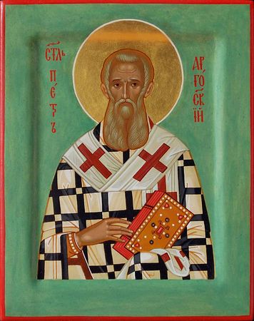 Два самых младших брата, Петр и Платон, оставались еще некоторое время в миру, чтобы завершить образование. Они ушли в монастырь, как только это стало возможно. Петр был движим таким рвением, что вскоре превзошел своих братьев и других монахов в подвиге и явился для всех образцом добродетели. Он всегда был серьезен и внимателен к самому себе, владел всеми движениями души, никогда не сердился и не смеялся громко. Однако часто его лицо освещалось улыбкой, обнаруживающей настоящую духовную радость. Его облик, походка, слова – все в нем было достойно восхищения и вызывало желание подражать ему. Несмотря на свою строгость, он был общителен и приветлив со всеми, с готовностью участвовал в разговорах, если они приносили духовную пользу, охотно при этом цитируя слова мудрых людей и святых отцов. Его славные добродетели и разумение привлекли внимание патриарха Константинопольского святого Николая I Мистика (память 16 мая). Он предложил Петру стать епископом Коринфским. Но Петр из любви к безмолвию отказался. Патриарх тогда назначил архиепископом Коринфским старшего брата – Павла (память 27 марта), бывшего в то время игуменом монастыря. Петр решил и дальше избегать предложений патриарха, который хотел поставить его архиепископом Кесарийским. Он последовал за братом Павлом в Коринф и поселился за городом, в пустыне. Там, вдалеке от всех, он посвятил себя молитве и составлению песнопений и речей во славу святых. Несмотря на все усилия, светильник не мог долго оставаться под спудом. Когда епископ Аргосский умер, жители Аргоса вместе с жителями города Навплия и его окрестностей умоляли Павла поставить брата их пастырем. Петр отказался и на долгое время скрылся. Когда он вернулся в Коринф, думая, что опасность миновала, верующие снова бросились к нему, говоря, что из-за его отказа новорожденные умерли без крещения и мертвые остались непохороненными. Тогда он согласился. Епископ Петр, светильник, поставленный на подсвечник Аргосской Церкви, в изобилии распространил свет своих добродетелей и евангельского учения. Прежде всего, святой обратил внимание на состояние духовенства, без колебания отрезая духовным мечом недостойных его членов. Но ко всем тем прихожанам, которые выражали желание каяться, он проявлял терпение, снисхождение и сочувствие. Святитель Петр особенно отличался странноприимством и любовью к нищим. Он отказывался от последней сорочки, чтобы их одеть, и давал приют в своем доме всякому, кто к нему приходил, не спрашивая, ни кто он, ни откуда. Каждый день его дом наполнялся несчастными, калеками, слепыми, вдовами и сиротами, которые находили у своего епископа Божию милость. Никто не уходил, не получив помощи, и если слуги кем-нибудь пренебрегали, то Петр на следующий день давал ему двойную порцию. Когда весь Пелопоннес был охвачен губительным голодом (927), святитель Петр накормил тысячи бедняков и без счета раздал содержимое своих амбаров. Но запасы провизии подошли к концу, остался только один кувшин муки. Святитель Петр велел дальше раздавать еду – и кувшин не оскудевал, пока все не насытились. В то время варвары[1] часто совершали набеги на Пелопоннес. Если они разрушали дом кого-либо из верующих, епископ вновь строил его за свой счет. Он заботился об образовании молодежи, платил за тех, кто уходил учиться в другой город, раздавал не