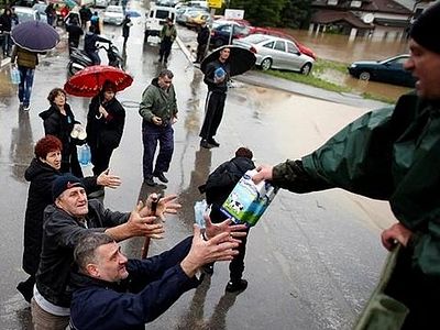стоит вода, многие люди потеряли свой кров. Уровень воды