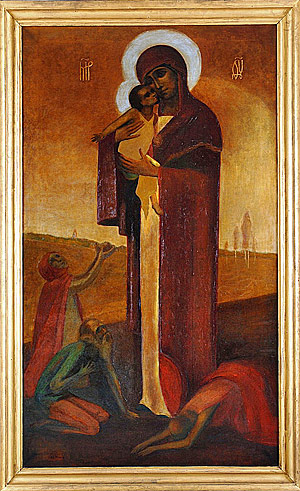 Разрушительное землетрясение 1923 года, вслед за которым последовал сильнейший пожар, не пощадило практически весь Токио. Множество людей в столичном мегаполисе оказались без крова и без работы, поэтому не случайно Варвара Бубнова написала икону «Всех скорбящих Радосте»: терпящие лишения молят Богородицу о помощи.
