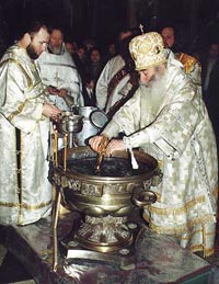 Святая Церковь хочет тронуть души наши указанием на то, как «море увидело и побежало, Иордан возвратился вспять» от лица Бога, вступившего в воды, как вострепетали горы и холмы, моря, озера, источники, видя Творца всякой твари, уничижившегося до образа раба, - как же должны были бы сотрястись сердца людей при виде чудного зрелища: ибо ведь не Ангелов и не бездушную природу пришел спасти Христос, а род человеческий! Святая Церковь, желая, чтобы мы с большим разумением отнеслись к таинству спасительного возрождения от воды и Духа, изъясняет разными образами самое чудо возрождения, вспоминая, как, по слову Исайи, пустыня, земля сухая, необитаемая, заросшая терновником и колючим кустарником, обращается в цветущий сад от благодатного дождя, ее орошающего, _ это образ того, как неплодное для добра естество человеческое, орошаемое токами благодати Христовой, может сделаться плодоносным, как купель крещения делается «многочадною Божественным Духом». И сколько еще мыслей самых высоких, трогательных, прекрасных содержат в изобилии песни церковные предпразднственные! Но для большинства это приготовление к таинству Богоявления проходит бесследно: они и не слышат этих песней, не знают о них, не хотят понять. Вместо того, чтобы идти ко Христу, зовущему: Жаждущие! идите все к водам (Ис. 55, 1), они блуждают вдали от Христа, угасив духовную жажду заботами житейскими, а еще более развлечениями суетными. Даже если бы они зашли в церковь, мысли их бегут во все стороны и они не могут сосредоточить их на песнях церковных, особенно привлечь к ним блуждающее сердце. И вот теперь, когда, наконец, святая Церковь уже прямо призывает «почерпать воды из источников спасения», они или не идут, или посылают за себя других на краткое время. Да и если придут, для них, не приготовившихся почерпать воды «из источников спасения», в том, что видят они здесь в церкви в спасительный день Господень, нет никакого таинства: они с рассеянным шумом черпают как бы обыкновенную воду и затем ставят ее куда-либо в угол, чтобы забыть на целый год. Правда, они в иные трудные времена жизни, может быть, и вспомнят, что почерпнутая вода есть вода спасения, но только для уврачевания болезней телесных, тогда как Господь подает дар святости этой воде ради главным образом освящения душ, для очищения их от скверн страстей, для отгнания всяких сопротивных сил. Ведь если бы Господь подавал воду эту для исцеления телесных главным образом болезней и если бы исцеление от болезней телесных было главным и нужнейшим для нас благодеянием от Бога, то что препятствовало Ему создать нас безболезненными? Ведь просим мы Его больше всего об избавлении от телесных болезней, забывая, что Он Сам иногда посылает болезни телесные, чтобы чрез них удобнее уврачевалась наша душа. А о том, что вода почерпается в нынешний день для освящения душ, забывают люди, да и не ценят этого действия воды, не верят почти в него: как, думают они, от омовения тела водою может очиститься душа? Они готовы тогда только признать чудесное действие воды, если заметят какое-нибудь ощутительное движение в ней при освящении (почему ждут, когда всколыхнется она) или если вода освященная подействует как-либо осязательно и ощутительно на душу. Но напрасны эти ожидания. Неужели важно, чтобы всколыхнулась только вода от сошедшего на нее Святого Духа? Н