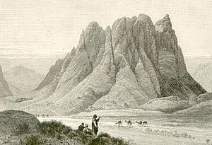В 1866 г. храм Преображения Господня по-прежнему стоял на вершине Синая. Во всяком случае, иеромонах Саровской пустыни Паисий вместе с другими паломниками отслужили там «Божественную литургию, по окончании которой служили молебен Спасителю, Божией Матери с акафистом Св. Троице». Однако порядок богослужения завершился совершенно неожиданным образом. «При чтении окончательной молитвы сделалось ужасное потрясение всей горы, так что вся церковь ощутительно поколебалась, затрясся весь иконостас и иконы, отчего мы все устрашились и содрогнулись до обильных сердечных слез и душевных вздохов».[43] Архимандрит Порфирий в «Священных воспоминаниях о Синае» упомянул о нескольких крупных землетрясениях на полуострове в 1091, 1312, 1814 гг., а также рассказал о том, как один из его спутников по путешествию 1845 г., отправившись на охоту, «услышал сильный шум подземный и струсил». По этому поводу ученый паломник сделал следующее умозаключение: «Синайские горы, как великолепные покрышки, надвинуты на огни подземные».[44] По емкой характеристике Коробейникова, гора Хорив «велми высока, облака небесная ходят по воздуху ниж горы и трутся по горе; а ветр велик на горе вельми и студь велика». Отметим, что ее высота — 2 285 м над уровнем моря. Под руинами маленькой мечети, вероятно, той самой, о которой упоминали Василий Григорович-Барский и архимандрит Порфирий Успенский (ее предположительно датируют XVI в.) показывают пещерку между камнями, в которой, по преданию, находился Моисей.[45] На самой же вершине Хорива, согласно современным путеводителям, находится церковь (часовня) Св. Троицы, выстроенная в 1931–1934 гг. в основном из материалов древнего храма, возможно, юстиниановского[46].