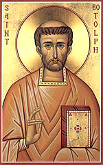 Впоследствии он много путешествовал. Вполне возможно, что свой иноческий опыт Ботольф приобрел в Суссексе, а затем в северной Франции. По возвращении в Англию он, вероятно, посетил Нортумбрию и нынешнее графство Шропшир, а также провел некоторое время в Линкольншире, в нынешнем городе Бостон, чья местная церковь носит его имя; сам город, очевидно, также назван в его честь[6]. Затем он вернулся в Землю Восточных Англов и в 654 году начал строить монастырь в Икене, расположенном близ города Олдборо (Алдбург) на побережье Суффолка. Икен, представляющий собой отдаленную точку на южном берегу извилистой дельты реки Альды, идеально подходил для монастыря. Находящаяся сегодня на этом месте церковь, покрытая тростником, все еще носит имя св. Ботольфа. Здесь святой подвергался многочисленным нападениям бесов, которых он прогонял, творя крестное знамение. Он собрал вокруг себя общину монахов, возделывавших землю и превративших запустелую болотистую местность в плодородные угодья. Игумен Ботольф, чьи дела никогда не расходились со словами его проповеди, глубоко почитался за свои чудеса, равно как и за святость своей жизни, дар пророчества и нищелюбие. Пользуясь обширной речной сетью, покрывавшей Землю Восточных Англов, он совершал отсюда плавания по многочисленным рекам, распространяя благую весть по всей этой стране, особенно по земле Суффолка, но также и в Эссексе и Кенте. К Ботольфу, прославленному святостью своей жизни и необыкновенной ученостью и «исполненному благодати Святого Духа», приходило за советом множество иноков со всей страны. Удрученный бременем старости и забот, благообразный игумен Ботольф почил в Бозе 17 июня 680 года и сразу же стал почитаться как святой. Слава его быстро распространилась по всей Англии, и не менее 64 древних церквей были освящены в его честь. Хотя большинство из них находилось в восточной части Англии, храмы, посвященные ему, существуют и в других частях страны, возможно, в память о его путешествиях. Примечателен, например, тот факт, что внутри всех четырех городских ворот Лондона имелись часовни, посвященные св. Ботольфу. Его слава проникла даже далеко за пределы страны, особенно в Голландию, северную Германию и Данию, а к XI веку почитание его достигло Киева. Св. Ботольф считается покровителем путешественников и торговцев, и имя его поминается в молитвах о даровании благоприятной погоды и богатого урожая. Св. Эдмунд, король и мученик