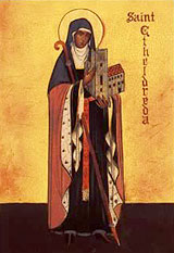 Еще будучи молодой девушкой, Этелдреда, благодаря влиянию св. Феликса, а также его друга и сподвижника св. Эйдана и ученицы последнего, будущей игумении Илды (Хильды), испытывала сильное влечение к монашеской жизни. Тем не менее, в 652 году она была выдана замуж за дворянина из «Страны Низин» (расположенной на границе нынешних графств Кэмбриджшир и Линкольншир). В качестве приданого Этелдреда получила город Эли и остров, на котором он находился. В 655 году супруг ее скончался; вероятно, в брачные отношения они так и не вступили. Вопреки ее надеждам на начало иноческого подвига в Эли, в 660 году она вновь была вынуждена выйти замуж по политическим соображениям, на этот раз за 15-летнего короля Нортумбрии, став таким образом королевой этой страны. И на этот раз отказавшись от брачного сожительства, она, судя по всему, часто посещала обитель своей давнишней приятельницы св. Илды в Витби (Хвитби). В конце концов, в 672 году супруги по обоюдному согласию расстались, и Этелдреда, вступив, наконец, на предназначенное ей Богом поприще, была пострижена в монахини в обители св. Эббы (Евви) на севере Англии. В 673 году Этелдреда возвратилась в Эли. Здесь она основала общий монастырь для мужчин и женщин[5] и стала его игуменией. Она даровала монастырю обширные земли в окрестностях города Вудбридж, на востоке Суффолка. Здесь святая примерно подвизалась в иночестве, ведя «небесную жизнь – словом и делом». Отказавшись от царской роскоши, она носила простую одежду и ела всего лишь раз в день. Ежедневно Этелдреда по много часов проводила в церкви, предаваясь молитве, и, в конце концов, сподобилась дара предвидения будущего. Она предсказала и точный день своей кончины в 679 году. В 696 году было обнаружено, что тело ее не подверглось тлению, «как если бы она умерла и была похоронена в тот же самый день». После ряда чудес, совершившихся по ее молитвам, всем стало ясно то, в чем многие уже давно были уверены: Этелдреда – святая. В течение многих последующих столетий ее почитание оставалось неизменным, и она стала величайшей святой Восточной Англии. К ее гробнице в Эли стекались со всех концов страны и многих девочек при крещении назвали и до сих пор называют в ее честь. Ее правая кисть, сохранившаяся нетленной, и поныне находится в римско-католической церкви города Эли. Поистине, для христиан сегодняшнего дня св. Этелдреда по-прежнему остается источником «благородной силы». Св. Ботольф Икенский