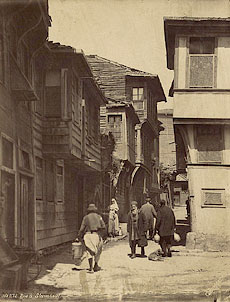 Благополучно пройден мост. Оглядываемся назад. Какая пред нами пестрая картина: внизу раскинута Галата, а вверху красуется Пера — европейская часть города. Здания лепятся одно на другом. Со стороны кажется, что как будто там между ними нет и никаких ни улиц, ни переулков. Но мы уже видели своими глазами, какая жизнь кипит там.