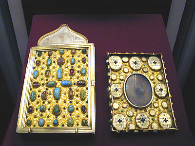 В центре ковчега Риза Божией Матери, позднее были добавлены ризы русских святых: святителей Петра, Алексия, Ионы и Филиппа, царевича Димитрия и Трех Святителей вселенских. Первоначально в этом ковчеге была привезена в Москву часть Ризы Господней.