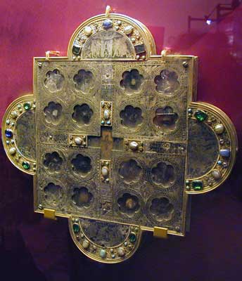 Ковчег Дионисия Суздальского. В центре - часть Креста Господня, частицы тернового венца, горы Голгофы и другие святыни Страстей Господних.