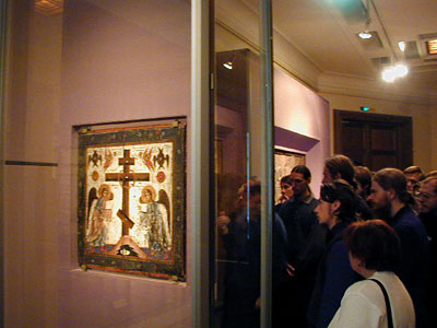 Ïåðåä äâóñòîðîííåé èêîíîé Ñïàñà Íåðóêîòâîðíîãî 12 â.