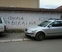 Графити мржње на зиду манастира Успења Пресвете Богородице у Ђаковици