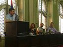 Промоција романа оца Тихона «Несвети а свети» издавачке куће «Чувари» одржана је уочи Видовдана у препуној Барокној сали Градске куће у Зрењанину.