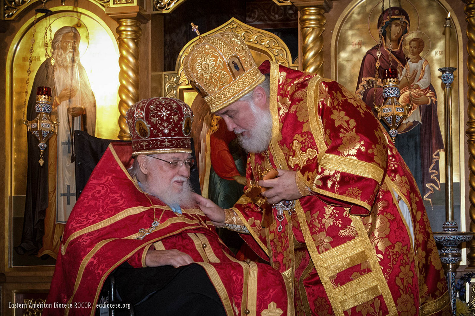 The festal All-Night Vigil and Divine Liturgy were celebrated by Archbishop Gabriel of Montreal & Canada. His Eminence was co-served at Liturgy by Fr. Valery, cathedral dean Archpriest Serge Lukianov, Archpriests Michael Taratuchin (rector of St. John of Kronstadt Memorial Church in Utica, NY), Petro Kunitsky (cleric of Holy New Martyrs & Confessors of Russia Church in Brooklyn, NY), Boris Slootsky (cathedral cleric), Vasily Raskovskiy (diocesan cleric), and Rafael Melendez (Albanian Orthodox Church), and Peter Heers (professor at Holy Trinity Seminary), Abbots Eutychius (Dovganyuk; diocesan cleric) and Cyprian (Alexandrou; cleric of Holy Trinity Monastery), Archpriests Athanasios Kyritsis (Orthodox Church of Greece), Seraphim Chemodakov (cathedral cleric), Protodeacons Joseph Jarostchuk (cleric of St. John of Kronstadt Memorial Church), Stephen Howanetz (cleric of St. John the Baptist Cathedral in Mayfield, PA), Nicholas Lukianov, Leonid Roschko, and Paul Drozdowski (cathedral clerics), and Deacons Michael Pavuk (cleric of St. John the Baptist Cathedral in Mayfield) and Sergei Kosov (cleric of Holy Trinity Monastery).