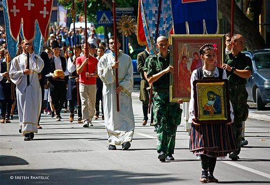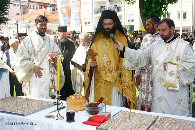 Свечана духовска литија уприличена је градским улицама до Храма Покрова Пресвете Богородице, где је пререзан славски колач и начињен литијски запис.