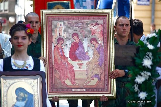 Празник Силаска Светог Духа на апостоле оживљава успомену на дан у коме је испуњено спасење и рођена Црква Божја. Данас је рођендан сваком ко је примио Свету тајну крштења. Благодат Духа Светог сишла је на апостоле и они су оснажени њоме кренули у свет да проповедају веру Христову. Господ Христос се распео да човек више не срља у грех, да може да хода земљом, а неба се држи, беседио је архијерејски намесник други ваљевски протојереј Милован Теовановић на Светој Литургији у саборном храму на празник Друге Тројице, које већ две деценије као своју славу обележава Град Ваљево.