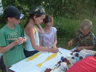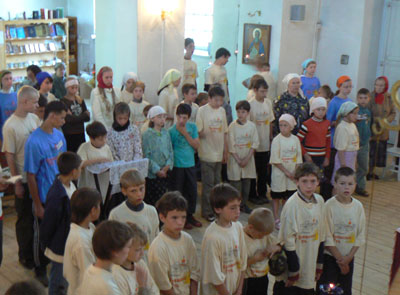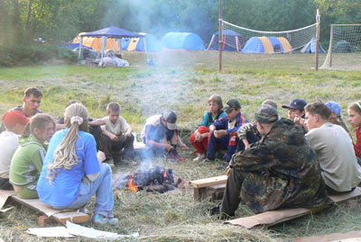 В программе этого года: обучение жизни на природе и навыкам самообслуживания; мастерские по пению и колокольному звону; спортивные игры, плаванье в реке; 1 и 2х дневные походы; паломничество в Великий Новгород; песни, хороводы, костры и приключения… Утром и вечером – обязательное молитвенное правило, в воскресные дни и праздники – участие в богослужении (храм – в 100 метрах от лагеря). Лагерь палаточного типа - ребята живут в больших 10-местных палатках. Планируемое количество участников: 70 детей и подростков, разделенных на 4 отряда, на которые приходится – не менее 20 взрослых. Для пребывания в лагере требуется спальный мешок, рюкзак и туристический коврик. Питаются дети в трапезной храма, еда готовится на электрической плите. Вожатые – семинаристы Сретенской семинарии и студенты педагогического факультета Свято-Тихоновского университета – прошли специальный курс подготовки для вожатых. Возможно участие родителей (проезд своим транспортом, проживание в своих палатках). Для родителей – отдельная программа отдыха и послушаний. Запись – после заполнения анкеты и личного собеседования с родителем и ребенком. Взнос – 3500 руб.(остальную часть затрат покрывает Сретенский монастырь). Руководитель смены: иеромонах Ириней (Пиковский), заместитель: Павлушенко Владислав Николаевич. Тел. 623-8046 (добавочный - 153). Фото прошлогодней смены: