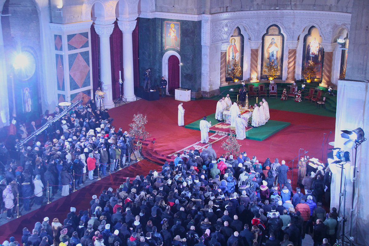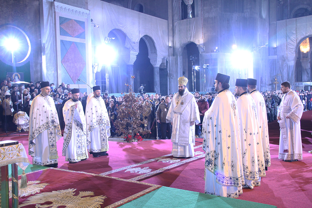 Храм и Светосавски плато су били испуњени многобројним верним народом који се сабрао да у заједништву прослави Рождество Христово, причестивши се и сјединивши са Господом.