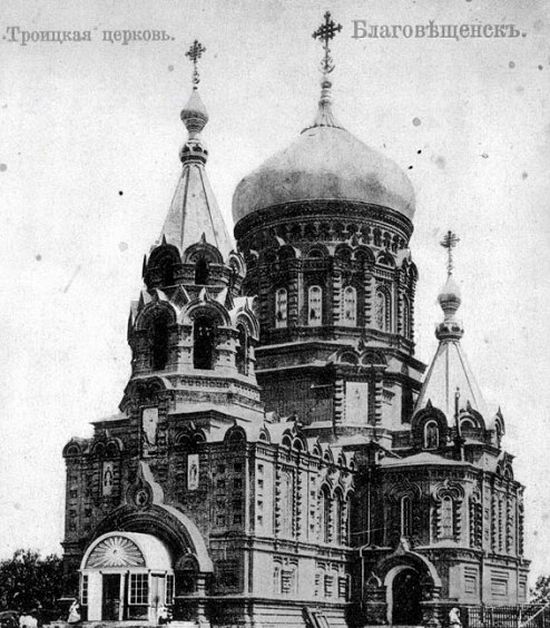 До революции только в Благовещенске насчитывалось порядка 20 православных храмов. Помимо самостоятельных приходов, было большое количество домовых церквей при учебных заведениях, госпиталях, больницах. Если не было возможности храм разрушить или сжечь, то он перестраивался до неузнаваемости. Свято-Никольская церковь лишилась колокольни. Первое здание Благовещенска стало похоже на обычную избу, в которой располагались различные учреждения.