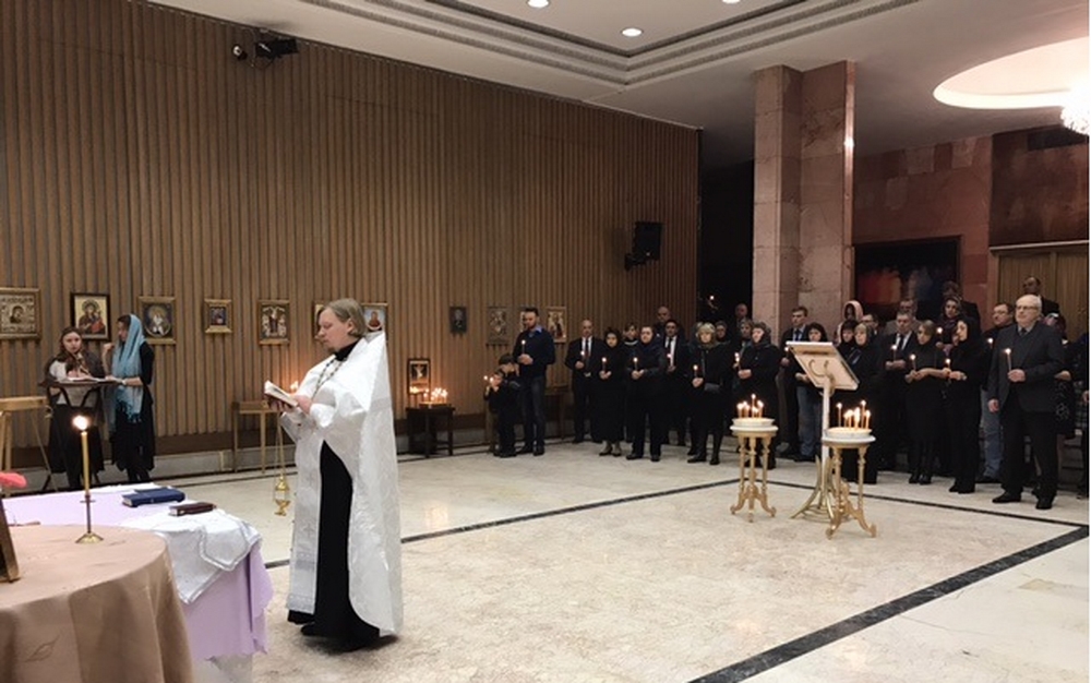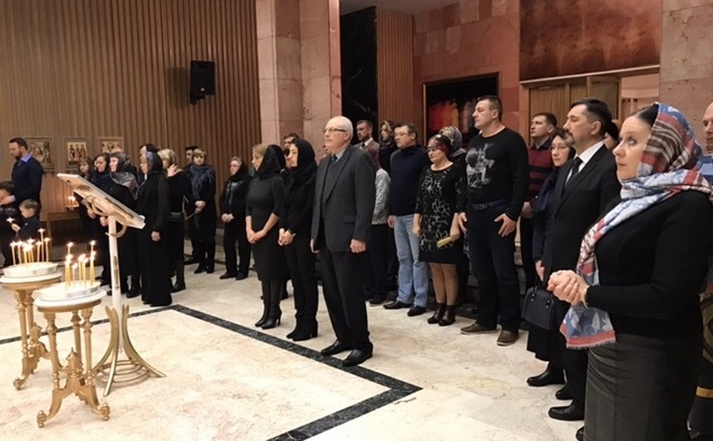 На поминальной службе молились вдова покойного Марина Михайловна Карлова, члены его семьи и друзья, а также сотрудники российского Посольства и члены их семей. Пел хор местной православной общины.