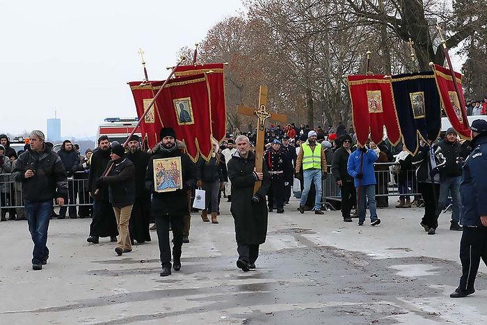 Уследила је свечана Богојављенска литија која је, предвођена Патријархом српским, прошла централним земунским улицама до обалоутврде на Кеју Ослобођења, где је патријарх Иринеј, пре пливања за Часни крст, освештао споменик Богојављенски пливач, који је постављен поводом 20-годишњице организовања традиционалног пливања у Дунаву.