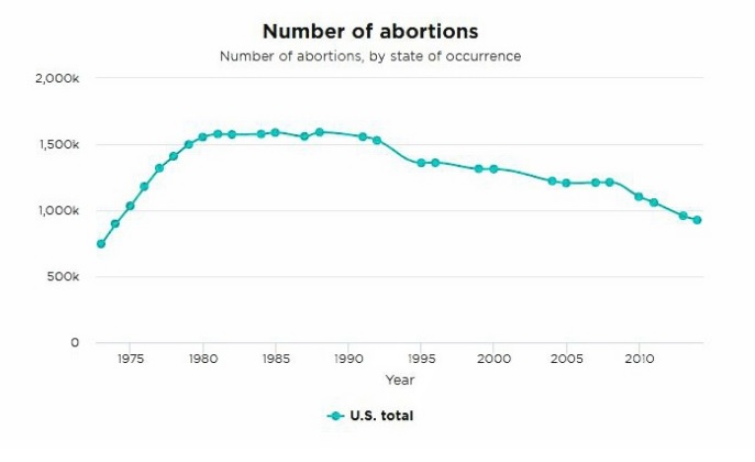 The National Center for Health Statistics has also released its 2016 data, corroborating the downward trend. According to their data, there were 40.3 abortions for every 1,000 teen girls in 1990, but the rate had plummeted to 16.3 abortions per 1,000 by 2009.