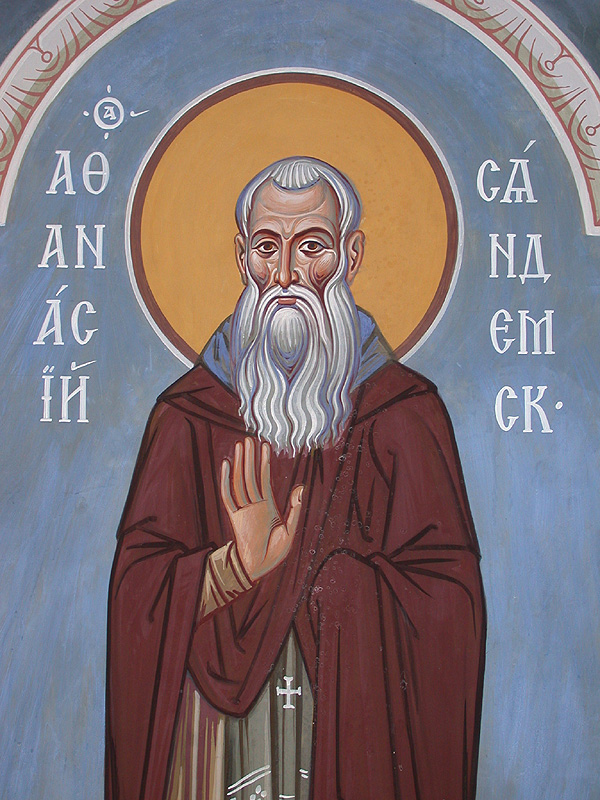 Saint Athanasius of Synadem and Vologda was a disciple of Saint Alexander of Svir (August 30). After the death of his mentor, he established the Dormition hermitage in the forests of Karelia, not far from the city of Olonets, on an island of Lake Synadem.