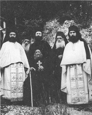 The synodia of Elder Joseph the Hesychast, Elder Ephraim on the far right. Photo: http://www.diakonima.gr/