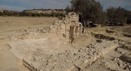 According to Blagovest, Georgian researchers recently found the small ruin of a wall near the village of Alaminos, west of the city of Larnaca. The area is surrounded by hills, with a flat field currently used for farming. The archaeologists believe the find bears witness to the existence of an ancient church, and that the discovered wall is in fact a part of it.