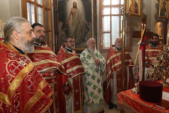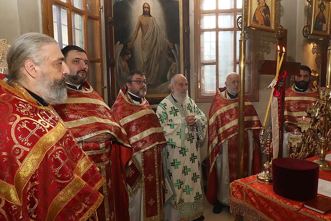 Свечана Литургија је одслужена на дан када Руска Православна Црква прославља своје новомученике и исповеднике у двадесетом веку. Литургијом је началствовао Његова Светост Патријарх српски г. Иринеј уз саслужење протојереја Виталија Тарасјева, старешине Подворја Руске Православне Цркве у Београду, и више свештенослужитеља Архиепископије београдско-карловачке.