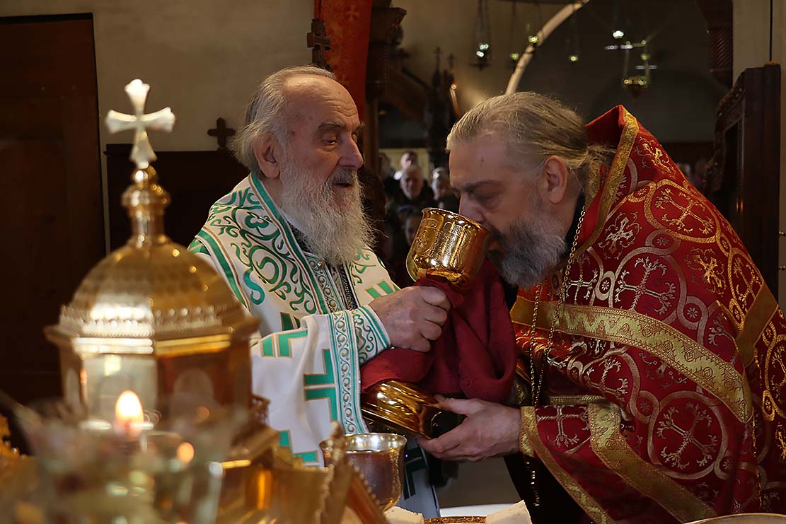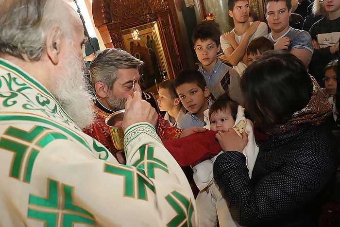 Патријарх српски г. Иринеј је заблагодарио Богу на величанственом дану и благослову Свјатјејшег Патријарха г. Кирила да служи у Светотројичном храму у Београду, а затим је казивао о новомученицима и страдалницима за Христа у Русији који нису желели да прихвате безбожничку идеологију током двадесетог века.