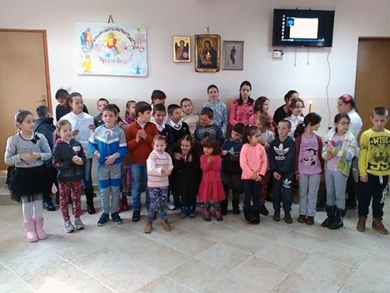 Дјеца основношколског узраста, њих педесетак, под руковођењем својих вјероучитеља попадије Лавинике Јововић и о. Велимира Јововића, принели су Богу и Светом Сави прегршт свог умијећа у пјесми,рецитовању и игри, прослављајући,на дјечији најискренији и најчистији начин, Светог и богоносног Оца нашег Саву, првог Архиепископа и просветитеља српског.