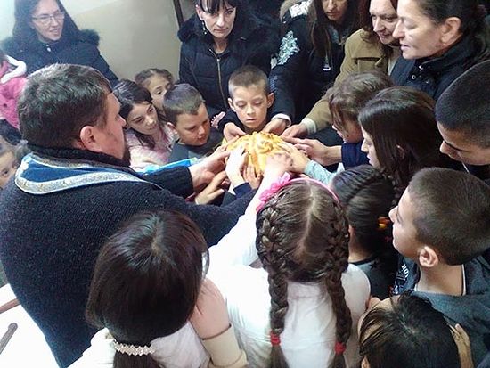 Свечаност је приведена крају пјевањем Светосавске химне, а потом је свештеник Јововић освештао славски колач и преломио га заједно са дјецом и њиховим родитељима, обративши се пригодном бесједом.