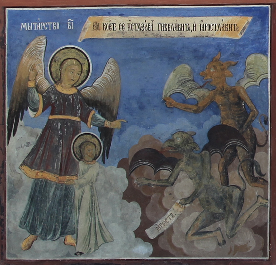 «Новое мытарство, которого мы потом достигли, было мытарством гнева и ярости; но и здесь, несмотря на то, что истязующие здесь духи свирепы, немного они от нас получили, и мы продолжали наш путь, благодаря Бога, покрывающего мои грехи молитвами отца моего преподобного Василия».