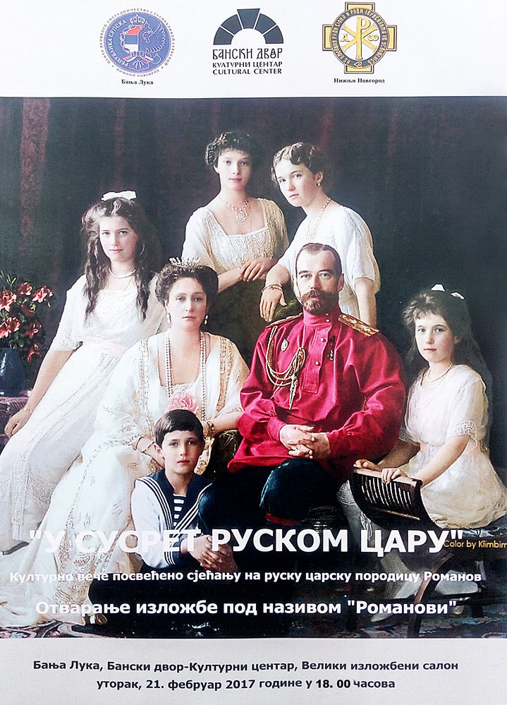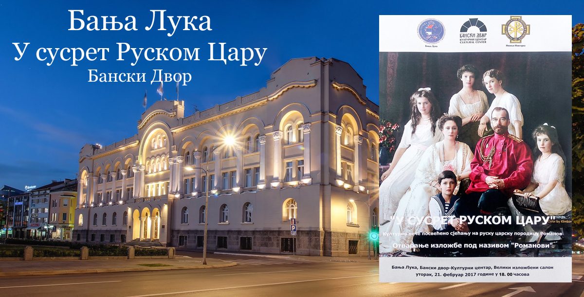 У уторак, 21.02.2017. године у Великом изложбеном салону Банског Двора у Бања Луци, са почетком у 18 часова биће одржано културно вече посвећено сећању на царску породицу Романов под називом „У сусрет Руском Цару“. У оквиру културне вечери биће отворена изложба коју су организатори назвали „Романови“.