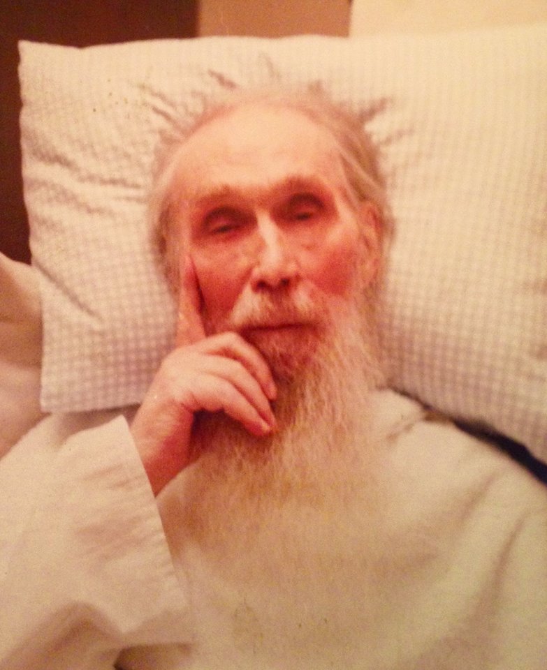 Старец лежал с закрытыми глазами, прикрытый до самого подбородка одеялом, и только руки, его добрые, мягкие руки покоились наверху. Мы поцеловали теплую десницу старца, приложились с благоговением, как к святыне, и с нежностью, как к родному человеку, к отцу.