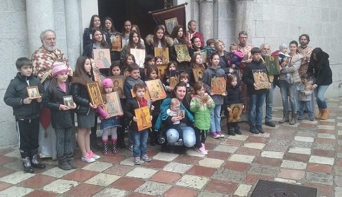 Литургију, у којој је учествовао дјечији хор Српског пјевачког друштва Јединство, служио је парох которски протојереј – ставрофор Момчило Кривокапић са свештенством.