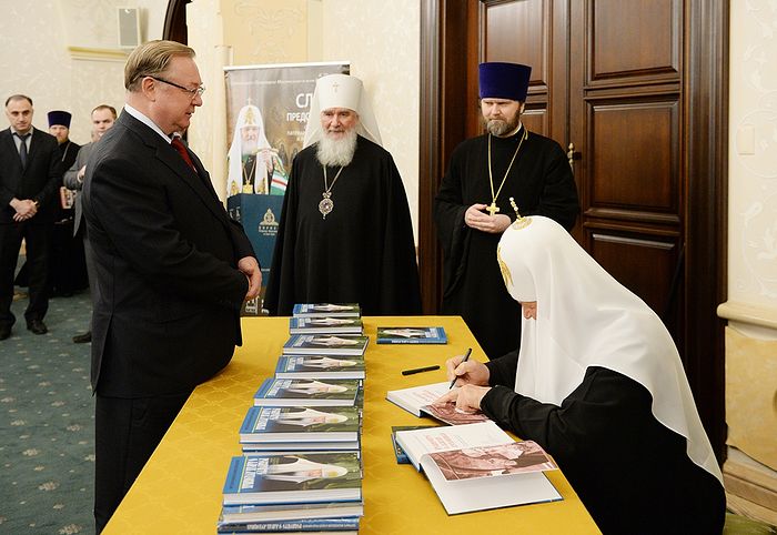 В завершение презентации Святейший Владыка подписал несколько экземпляров книги.