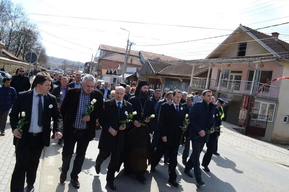 Заменик директора Канцеларије за КиМ Жељко Јовић дошао да поручи „да нико не може да нам узме право да се сећамо свих жртава, запаљених цркава, као и право да тражимо истину“. Заменик премијера Косова Бранимир Стојановић казао да је 17. марта 2004. године „требало да нам задају коначан ударац за све оно што нису успели да униште“. „Као народ који има велико трајање на овом простору, памтимо многе завршне и коначне ударце, али памтимо да након сваког од тих страдања увек долази ускрснуће и да оно што је за зликовце био наш крај, за нас био наш нови почетак...“, казао је Стојановић. Поред председника општине Грачаница Владете Костића, обележавању дванаесте годишњице од мартовског погрома и страдања присуствовали су и председник Комисије за нестала лица Вељко Одаловић, помоћник министра рада, запошљавања и социјалне политике Милан Поповић, представници Удружења киднапованих и несталих и остали представници Срба, као и велики број грађана.