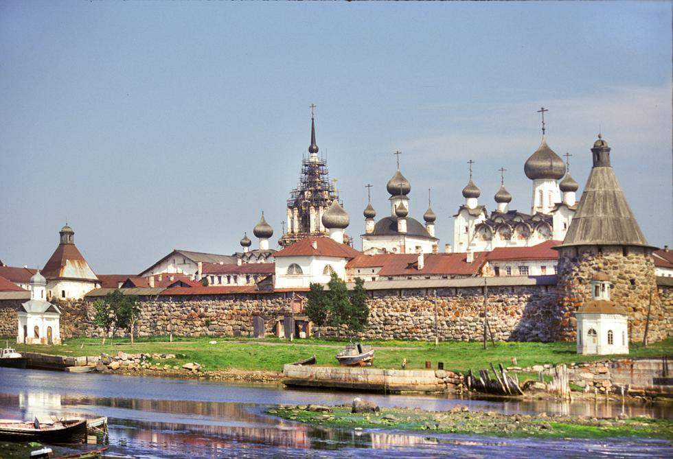Solovetsky Transfiguration Monastery, northwest view from harbor pier. July 25, 1998. / Photo: William Brumfield