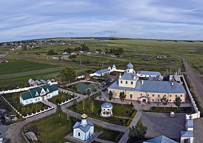 Да, братия помогали там со строительством. Мужская обитель располагалась в селе Малоирменка в 20-ти километрах от Козихи, где сейчас находится женский монастырь. В Козихе пространства больше, техника крупная могла заехать на территорию, а в Малоирменке все очень компактно. Поэтому, как только строительные работы были более-менее завершены, летом 1998 года обители поменяли местами.